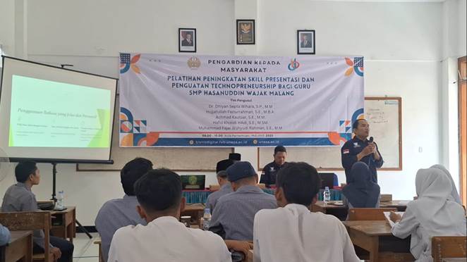 Di tengah derasnya arus digitalisasi pendidikan, SMP Hasanuddin Wajak Kabupaten Malang menjadi sorotan setelah mengambil langkah berani untuk bertransformasi menuju sekolah modern dan berdaya saing tinggi. Selama ini, sekolah tersebut menghadapi tantangan serius karena belum memiliki kehadiran digital yang kuat, seperti situs web profesional atau media sosial yang aktif. Kondisi itu membuat sekolah kehilangan banyak peluang untuk menarik minat calon siswa di era serba digital ini. Namun, tantangan justru menjadi pemicu perubahan besar. Menyadari pentingnya adaptasi terhadap zaman, SMP Hasanuddin berkomitmen melakukan lompatan strategis melalui program Pengabdian kepada Masyarakat (PkM) yang dilaksanakan oleh tim dosen dari universitas mitra. Program ini menjadi titik awal kebangkitan sekolah dalam membangun branding digital dan kemampuan technopreneurship di kalangan guru serta siswa.